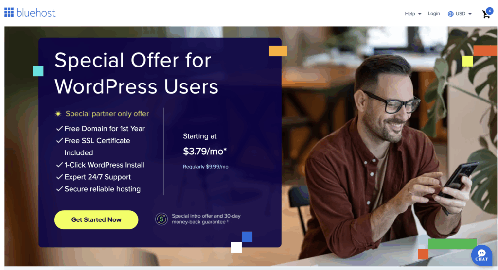 Don’t forget, you can get your domain name (your blog name) for free when you sign up for Bluehost! Click here to claim your free domain name.