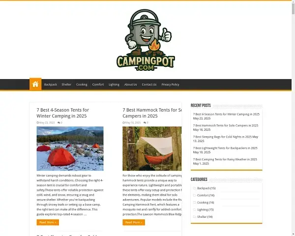 Selling a 1-year-old camping gear review Wordpress blog with 74 articles total and 180,000 words published in the last 12 months with buyer review guides.